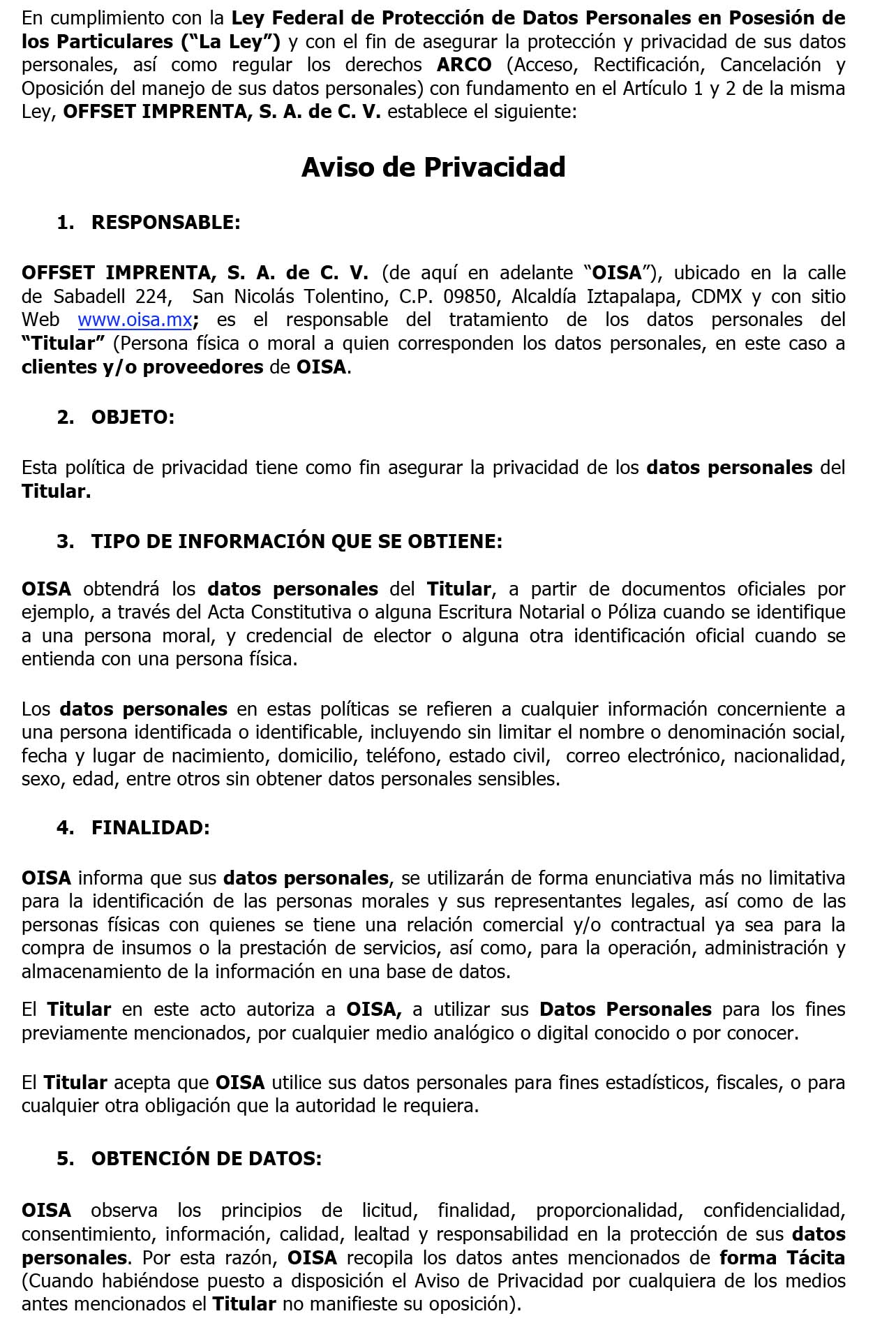 AVISO DE PRIVACIDAD CLIENTES